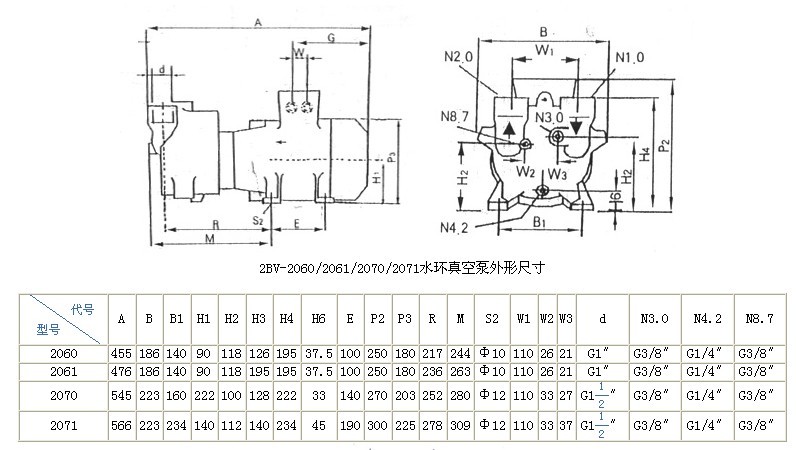 | 圖2 2BV-2060/2061/2070/2071水環泵結構圖 |
