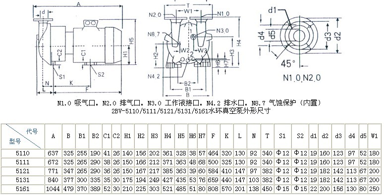 | 五、2BV水環式真空泵的主要技術數據: |
