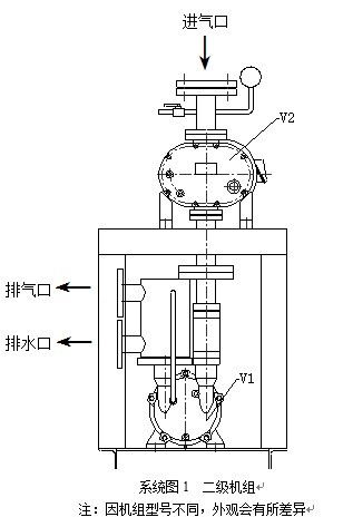 該機組的主泵爲V2型羅茨真空泵,由V1型液環真空泵作爲前級泵(如系統圖1),爲保證各泵的正常運轉,應按以下程序操作:
