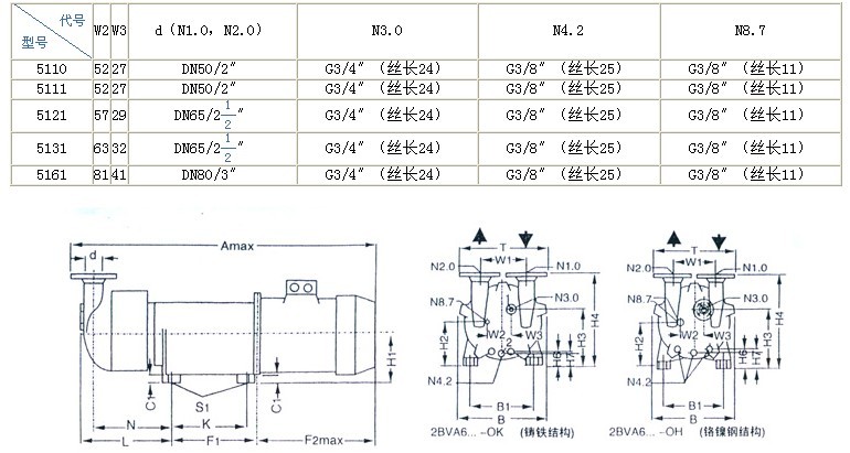 圖3 2BV-5110/5111/5121/5131/5161水環泵結構圖 |